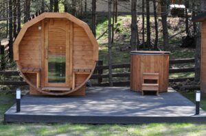 Bez względu na porę roku i pogodę, w naszych domkach poznacie co to znaczy pełnia spokoju ducha. To idealne rozwiązanie na rodzinny pobyt, lub wyjazd z paczką przyjaciół. Połączenie stylu rustykalnego i nowoczesnego charakteru pozwoliło na stworzenie tego niezwykłego miejsca. Na parterze przygotowaliśmy salon z kominkiem, który pozwoli na spędzanie wspólnych wieczorów przy lampce wina, dobrym filmie lub po prostu długich pogawędkach. W każdym domku znajduje się również klimatyzacja która pozwoli się ochłodzić w upalne dni. Na jesienne i zimowe wieczory zapraszamy do sauny gdzie można będzie się wygrzać a następnie schłodzić w zimnej bani. W pełni wyposażona, otwarta kuchnia zapewni swobodne przygotowanie posiłków o dowolnej porze. Na antresoli znajdują się dwie sypialnie, gdzie po aktywnym dniu możecie zapaść w błogi sen, a zagwarantuje to Państwu wygodny materac przy każdym łóżku.